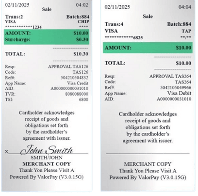 Surcharge amounts are displayed clearly at checkout and on receipts, giving customers full visibility and choice.